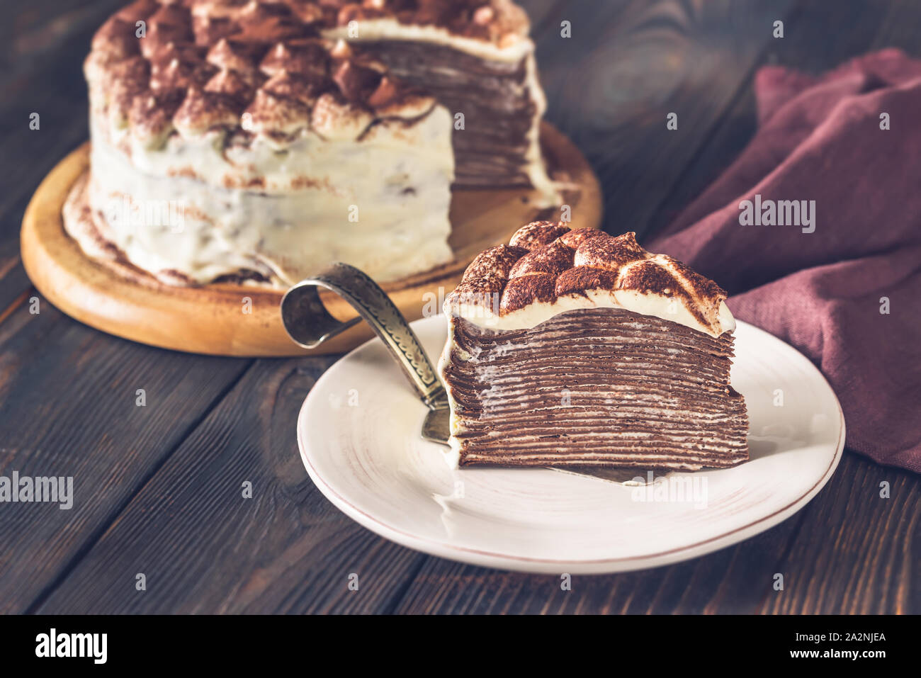 Slice Of Tiramisu Crepe Cake On The Plate Stock Photo Alamy